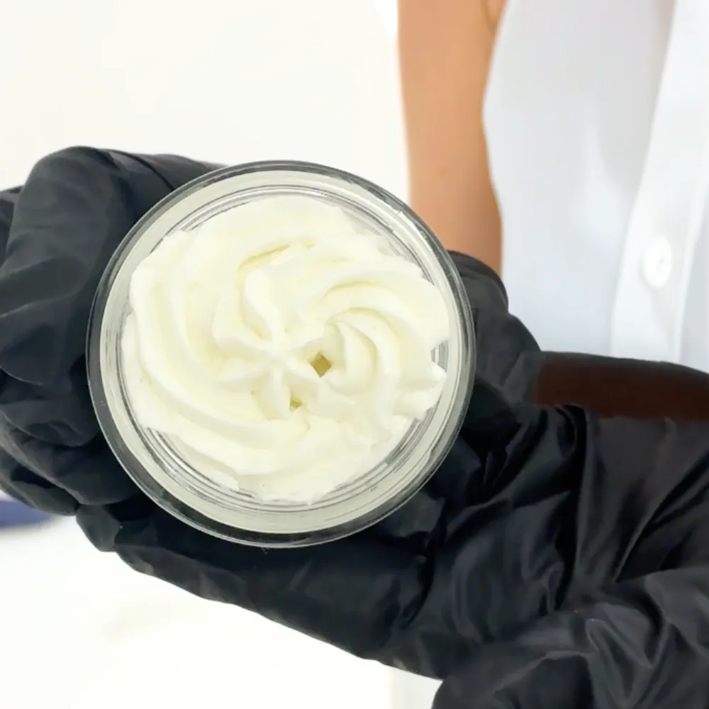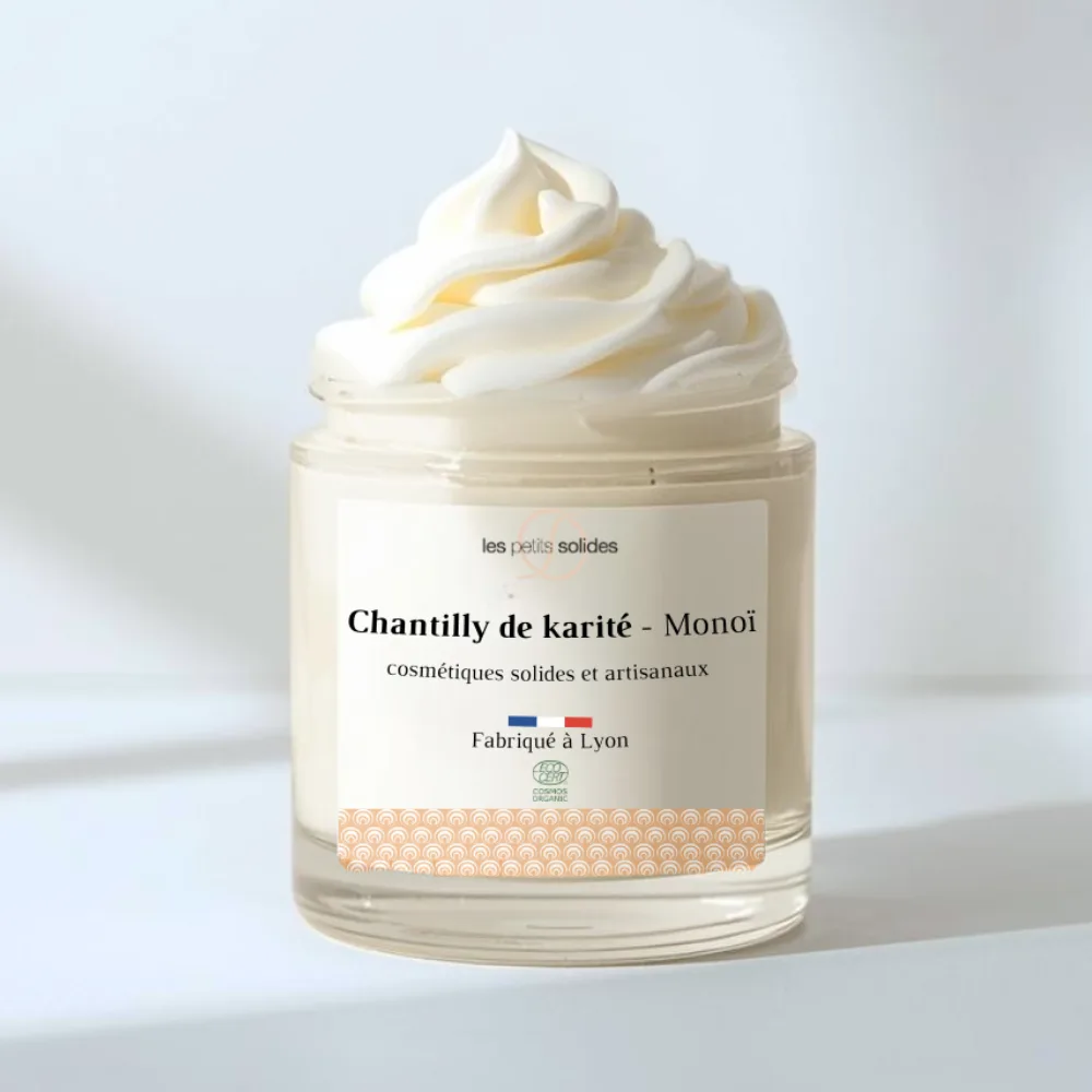Une chantilly bio formulée spécialement pour vous et votre peau. Elle est fabriquée à partir d’ingrédients 100% naturels tels que le beurre de karité, l’huile de coco et l’huile d’amande douce. De plus, nos chantilly pourront être utilisées sur les peaux sensibles sans risque.